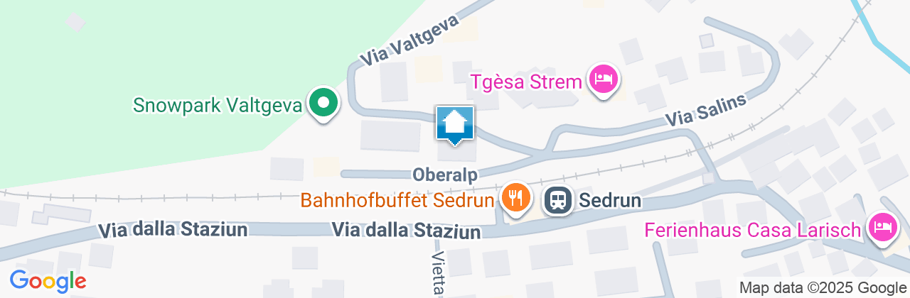 Die 2.5-Zimmer-Ferienwohnung (41m2 + Balkon 12 m2) befindet sich in einem freistehenden Mehrfamilienhaus mit insgesamt 7 Wohnungen. Das Haus befindet sich direkt oberhalb des Bahnhofes Sedrun an schöner Lage mit Aussicht in die Berge. Die Skilifte Valtgeva erreichen Sie in 40m zu Fuss und damit die Seilbahn zum Cuolm da Vi mit dem Skigebiet von Disentis. Den Bahnhof erreichen Sie via Fussgängerunterführung in 4 Minuten. Somit gelangen Sie innert kürzerster Zeit mit der Bahn zur Talstation des Skigebietes der Skiarena Andermatt-Sedrun.
