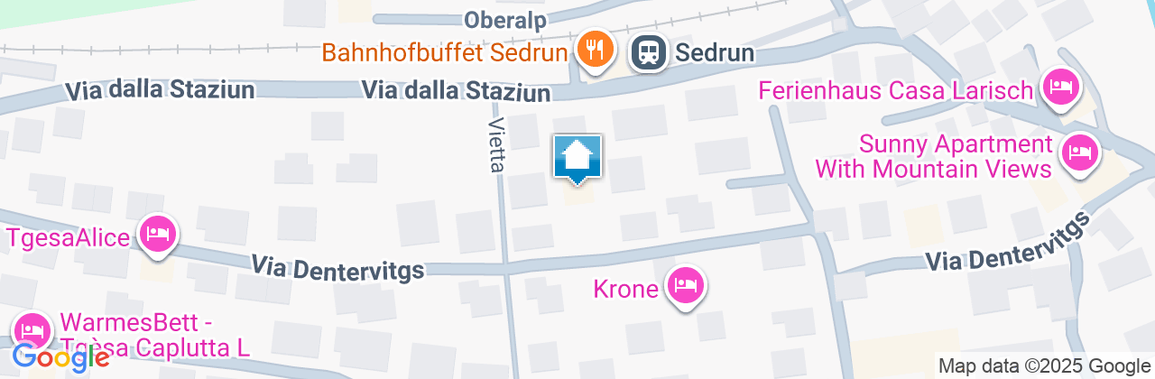 Die Ferienwohnung "Dentervitgs" befindet sich im 1. Obergeschoss eines im 2008 erstellten Baus in Sedrun Dorf mit herrlicher Aussicht auf die umliegenden Berge. Einkaufsmöglichkeiten, Bahnhof und Hallenbad sind bequem zu Fuss erreichbar. Die modern und stilvoll eingerichtete Wohnung mit einer schönen Loggia bietet Platz für bis zu 8 Personen. Im Winter lädt das Skigebiet Andermatt-Sedrun zum Schneesport auf der Piste oder Skitouren und Freeriden ein, im Sommer ist der Ort ein ideales Urlaubsgebiet für Aktivitäten wie Wanderungen, Radtouren, Mountainbiking und Downhill. Das Kinderskigebiet (Druni Kids Arnea) Valtgeva ist zu Fuss erreichbar. Ebenfalls zu Fuss erreichbar ist der neue Verbindungslift ins Skigebiet Disentis.